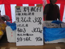 鮮魚(さんま)、ゆずが無料配布されました。秋の味覚とっても美味しかったです。